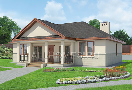 Одноэтажный дом, обладающий архитектурой в канадском стиле и имеющий оптимальную планировку в небольшом объеме. Дом имеет три спальни, просторную гостиную и кухню-столовую. Гостиная также обладает выходом на просторную террасу. В проекте грамотно продумано расположение кладовой и котельной, имеющей отдельный вход с улицы.