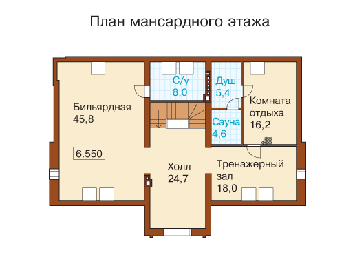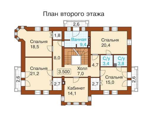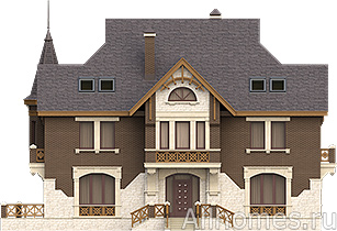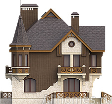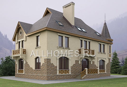 Проект великолепного кирпичного особняка с акцентированной на комфортное проживание и отдых планировкой. Шесть спальных комнат позволяют размесить на ночь 6-10 членов семьи или гостей. О повышенном требовании к комфортности говорит и наличие в доме шести ванных комнат, четыре из которых встроены в спальни и совмещены с санузлами. Дополнительно к этим ванным в доме запроектированы еще два санузла. Наличие в составе помещений дома кухни-столовой, гостиной с камином и выходом на террасу и даже помещение кабинета является естественной необходимостью, а вот размещение в мансардном этаже игровой зоны отдыха и зоны релаксации говорит об особенном отношении владельцев этого кирпичного дома к образу жизни и придает, к тому же, особый статус самой недвижимости.